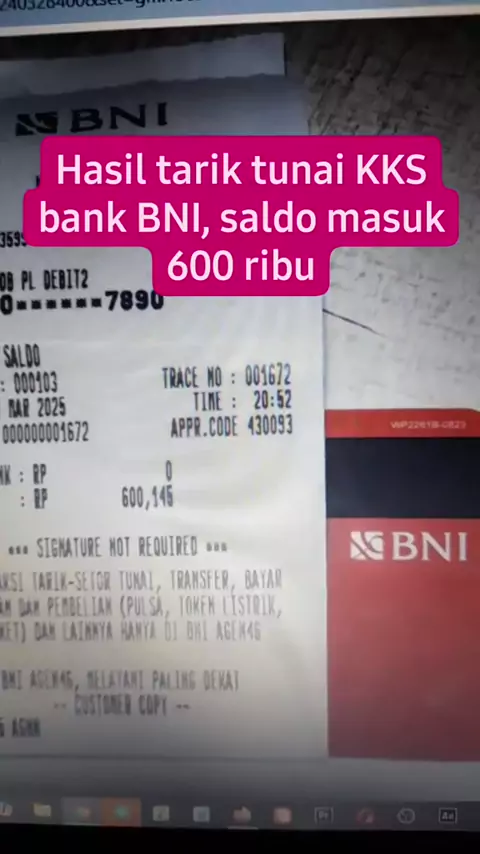 Hasil tarik tunai KKS bank BNI, saldo masuk 600 ribu#pkh#bpnt#kks#pos#blt#infobansos#pkhcair#infopkh#pkhcair#bpntcair#sembakocair#pkhtahap4#pkhtahap1#pkhtahun2025#kapanpkhcair#infopkhcair#semuaorang#bpnt2025#kksmandiri#kksbni#kksBRI