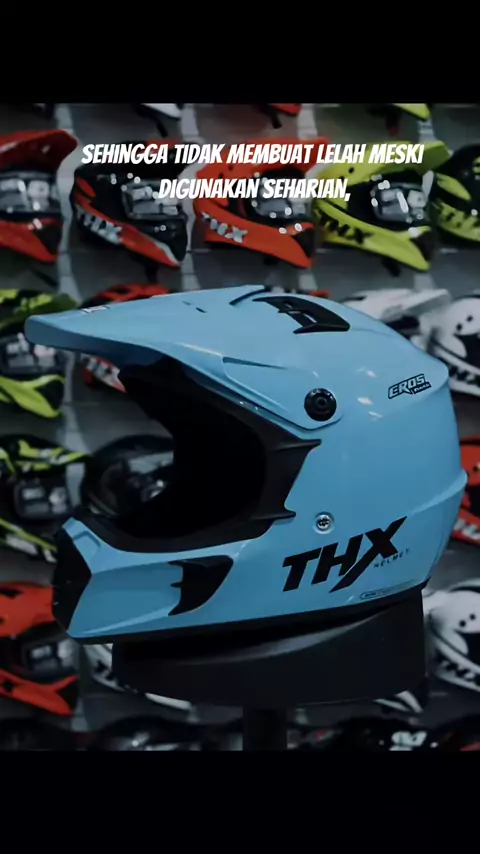 Helm cross THX hadir dengan banyak varian warna, cocok untuk para crosser maupun pengguna supermoto. Helm ini ringan saat dipakai, sehingga tidak membuat lelah meski digunakan seharian, baik untuk riding di jalan maupun jalur off-road. Sangat pas untuk kalian yang punya budget terbatas, karena helm ini dijual dengan harga murah tapi tetap terlihat mewah.#helmcrosstrail#trabas#helmcrossanak#helmmurah