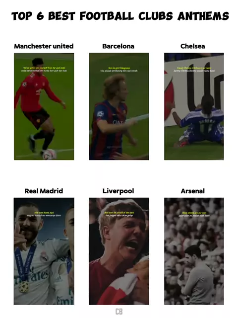 top 6 best football clubs Anthems #anthem #football #manchesterunited #barcelona #chelsea #realmadrid #liverpool #arsenal #songs #manchester #realmadridfans #barcelonafc # #chelseafc #liverpoolfc #arsenalfc #pppppppppppppppppppppp #сѓисѓџ #сѓи