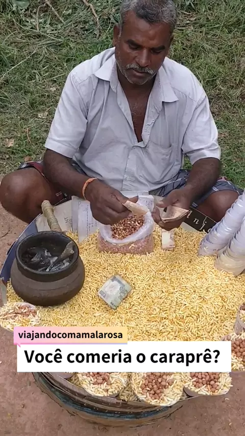 Você comeria o caraprê? Em nossa viagem pela Índia comemos várias coisas diferentes, entre elas esse salgadinho com amendoim 🥜 #Comida #com #desafio #Viajar #india