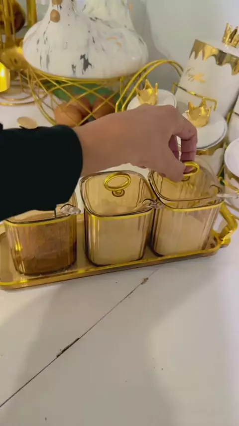 Toples bumbu akrilik dan nampan #toples #toplesbumbu #tempatbumbu #tempatbumbuakrilik #tempatbumbuestetik #tempatbumbugold #lebaranekstrasale