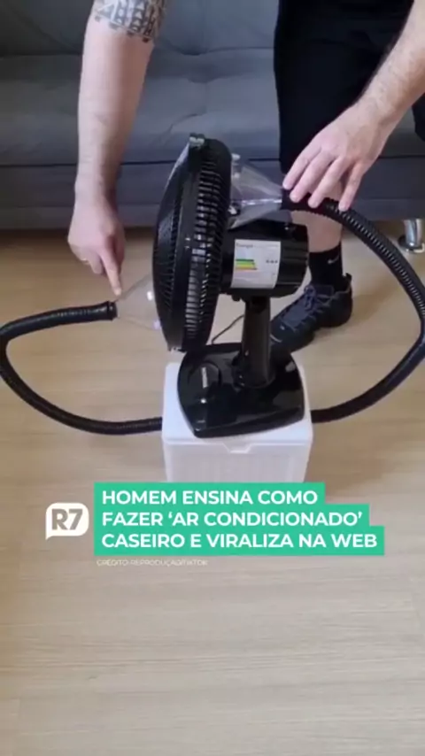 Um homem viralizou nas redes sociais após compartilhar um vídeo em que ensina como fazer um "ar condicionado" caseiro. 💨 Utilizando um ventilador, dois tubos de plástico, um isopor e cubos de gelo, ele desenvolveu um mecanismo que faz com que o ar que sai do aparelho seja gelado e refresque mais o ambiente. O vídeo foi visto mais de 6 milhões de vezes e recebeu mais de 2.000 comentários, nos quais os usuários disseram ter testado fazer o item e afirmaram que, de fato, funciona!
