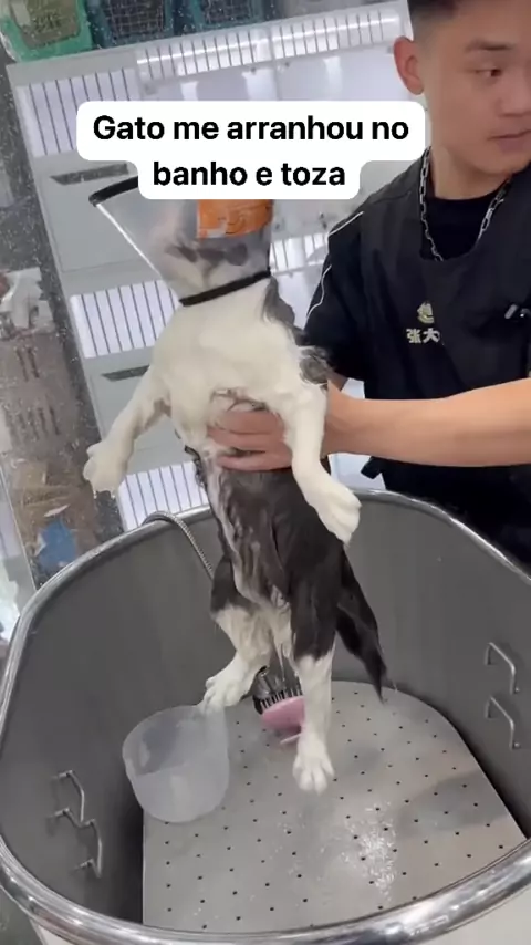Gato me arranhou no banho e toza #kwaipets #PitMonster #Americanbuly #pitbull