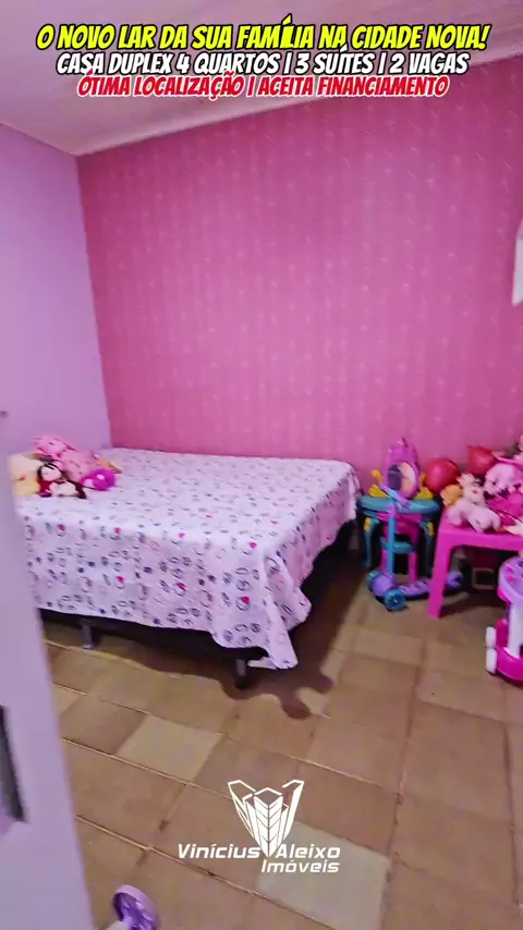 ✅VENDA 🏡 CASA DUPLEX CIDADE NOVA 🛏 4 quartos sendo 3 suítes 🚘 2 vagas de garagem 📐 Em torno de 120m² área construída ✅1⁰ pavimento: Pátio com 2 vagas de garagem com porta de correr, sala de estar, sala de jantar, cozinha, banheiro social, 3 quartos sendo 2 suítes, gabinete/depósito, quintal com lavanderia ✅2⁰ pavimento: terraço com janelas em vidro temperado, armadores de rede e 1 suíte Master 📌Localização: Cj. Cidade Nova 7, Tv WE 70, a poucos metros da SN24 (bem na esquina da Auto p