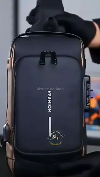 ⏭️ Mochila de Ombro Transversal Compacta Unilateral USB Trava de Código Pochete Á prova d'água!#Natal #AchadosNoKwai #shopkwai