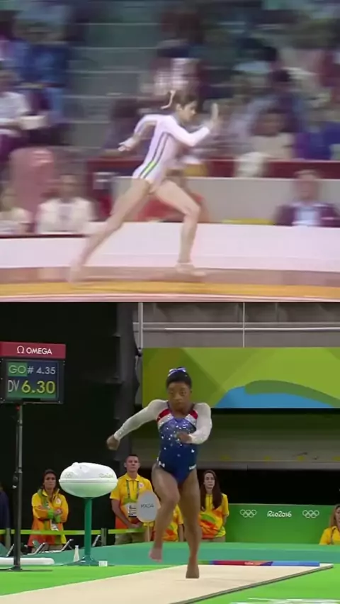 40 anos separam essas duas lendas da ginástica. 🤸 É impressionante ver as duas! Nadia Comaneci 🇷🇴 vs Simone Biles 🇺🇸 #VivendoOlimpiadas #Olimpiadas #Esportes #Esporte
