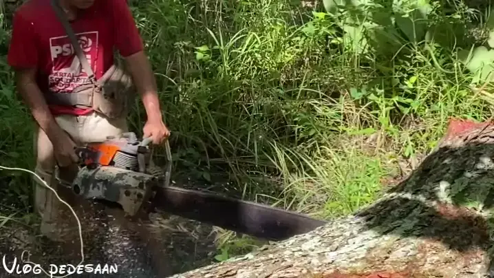 pemotongan kayu mahoni besar menguras tenaga #kayumahoni #woodworking #stihll070 #vlogpedesaan #vlog