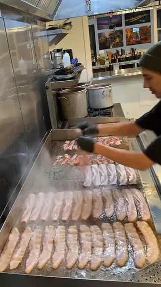 fritando Bacon #Bacon #hambúrguer #Comida #restaurante
