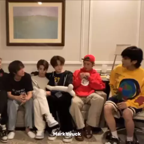bunga yang dari kakak ga di kasih ke siapa² dia pegang terus sampe selesai live, bahkan pas bagian lele pun Mark yang ngambil bunga baru di kasih ke lele😂#markhyuck#
