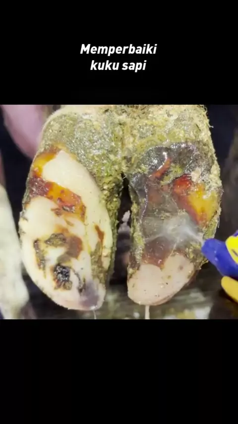 Ada lubang cacing di kuku sapi, menyebabkan kutikula terpisah.