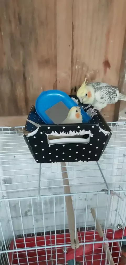 olha esse vídeo vcs vão gostar calopsita dentro da caixa assobiando para o espelho🥰
