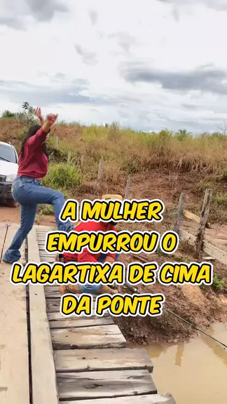 A mulher empurrou o lagartixa de cima da ponte