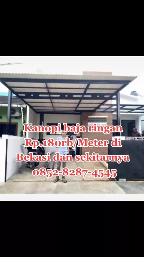 Spesialis Kanopi baja ringan. Kami melayani pemasangan kanopi baja ringan beserta matrial dan pemasangan nya, Harga nya tidak muluk2 cuma sebagai berikut. 1.Atap spandek polos Rp.180.000.-/m2 2.Atap spandek pasir warna Rp.230.000.-/m2 3.Atap spandek transfaran Rp.350.000.-/m2 4.Atap policarbonate Rp.380.000.-/m2 5.Atap Alderon single layer Rp.350.000.-/m2 6.Atap alderon doubel layer Rp.450.000.-/m2 7.Atap solartuf Rp.425.000.-/m2. Dll Jika berminat bisa menghubungi kami #bekasi