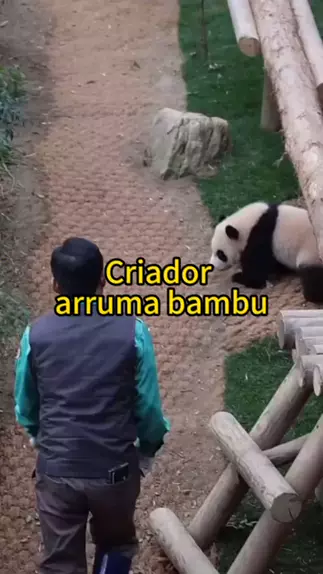 Criador arruma bambu #urso #panda #zoologico #pandagigante #panda🐼