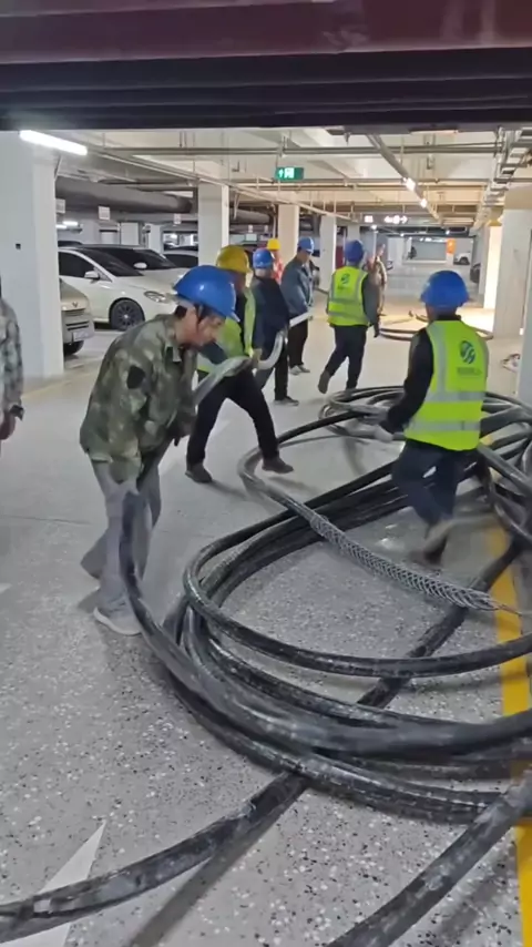 At the site of the cable laying facility, many people cooperated to pull the cable together. #cablelaying #cablelayinginnovation #cableconveyor #cablepulling #cable
