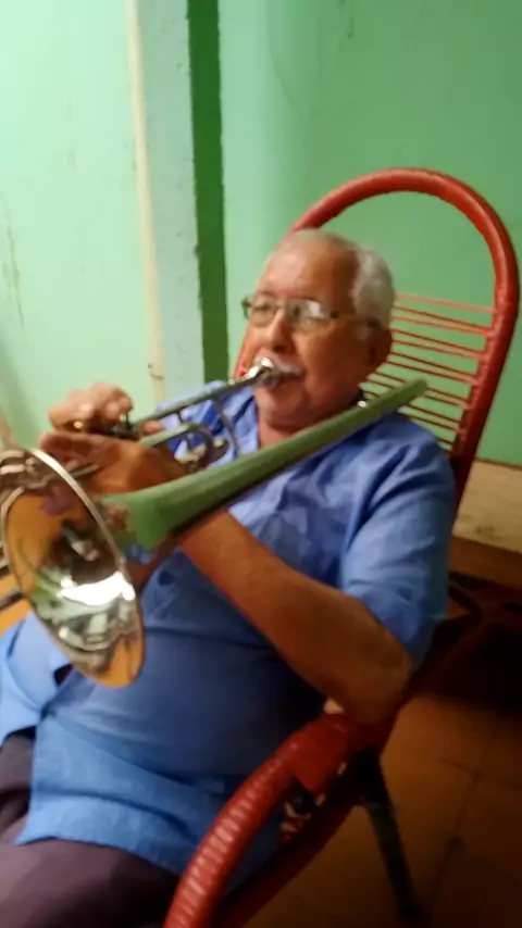 nosso querido irmão João com 84 anos ainda toca seu instrumento de sopro (trombone) maravilha.
