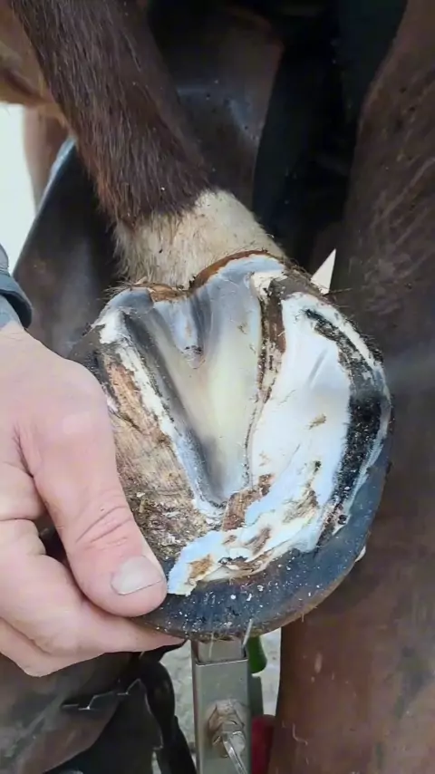Limpeza de casco de cavalo... #cuidado #cavalo #ferradura #ferrarcavalo #asmr💦