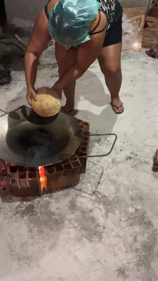 Assando bolinha de queijo no tacho