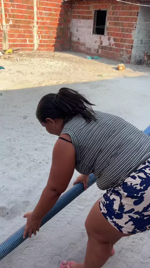 Olha a alegria dela porque vai encher a piscina