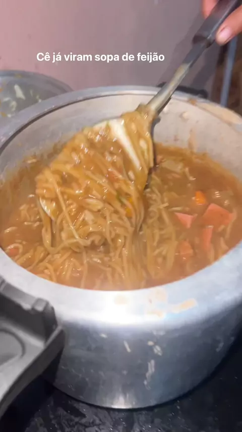 Olha como ficou a sopa dela de feijão