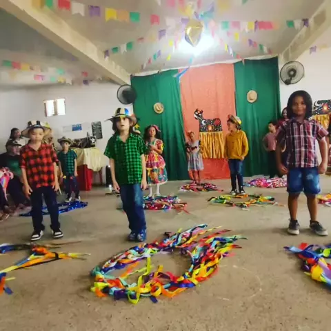 Apresentação Dança planta bambolê, festa junina .