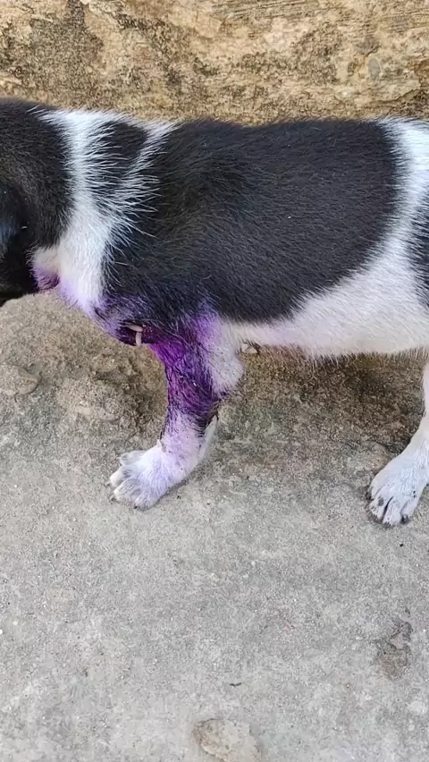 Curando bicheira no filhote que encontramos abandonado.