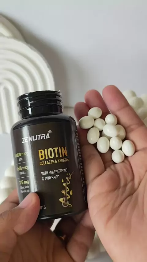 โRambut rontok, kusam, dan kulit nggak glowing? STOP dulu!โ Kenalin, ZENUTRA Biotin + Multi-Nutrient ๐ Suplemen vitamin dengan 10.000 mcg Biotin untuk rambut, kulit, dan kuku sehat! Diperkaya dengan: โ๏ธ Vitamin A 1.500 mcg โ๏ธ Collagen โ๏ธ Keratin โ๏ธ Hyaluronic Acid Manfaatnya? ๐ธ Membantu pertumbuhan rambut lebih sehat ๐ธ Rambut lebih tebal, kuat, dan berkilau ๐ธ Kulit tampak cerah & glowing ๐ธ Kuku lebih kuat dan tidak mudah patah Formula 3 in 1 Menutrisi dari dalam untuk rambut, kulit, dan k...