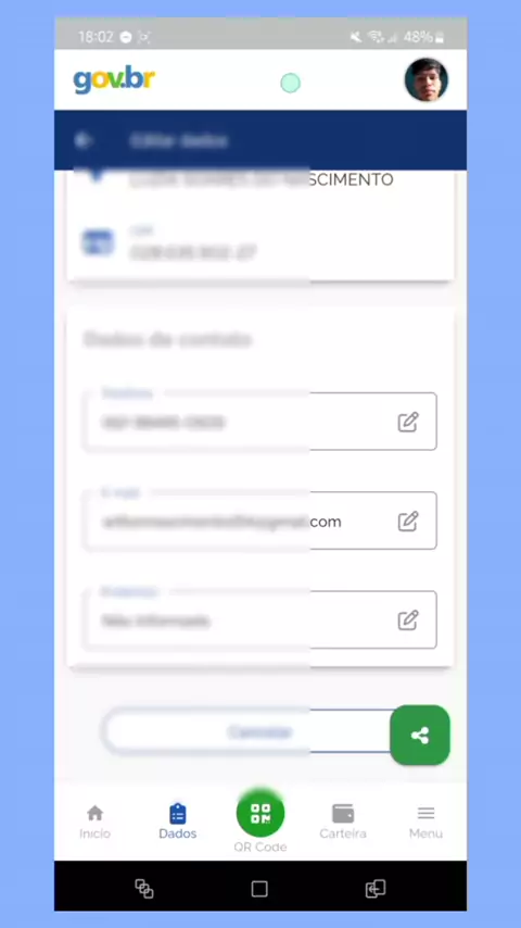 como mudar e-mail da conta gov.br