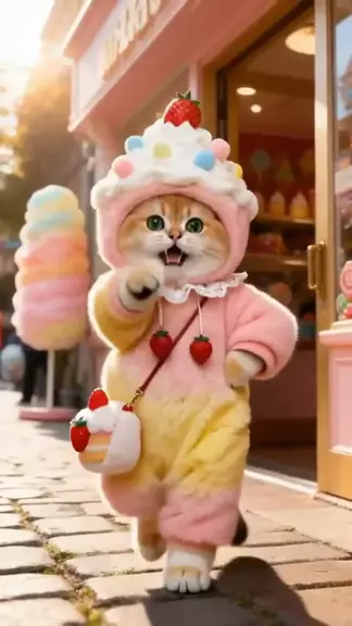 Rumor has it if you see this dancing kitty, your week will be as sweet as whipped cream! ๐ญ #CuteCats #StrawberryCat #DancingCat #Kawaii #AIGenerated