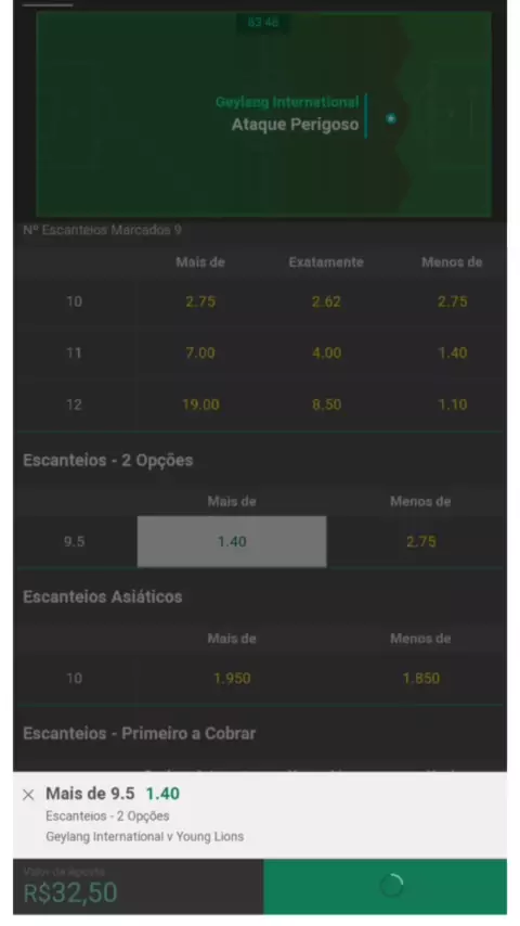 todos os escanteios "asiático" com final ".0" ex: 10.0 há reembolso caso não utrapasse os 10 cantos se passar paga as duas linhas como no vídeo✅✅✅⛳ #traderespotivo #cantolimiteasiatico #Estratégia
