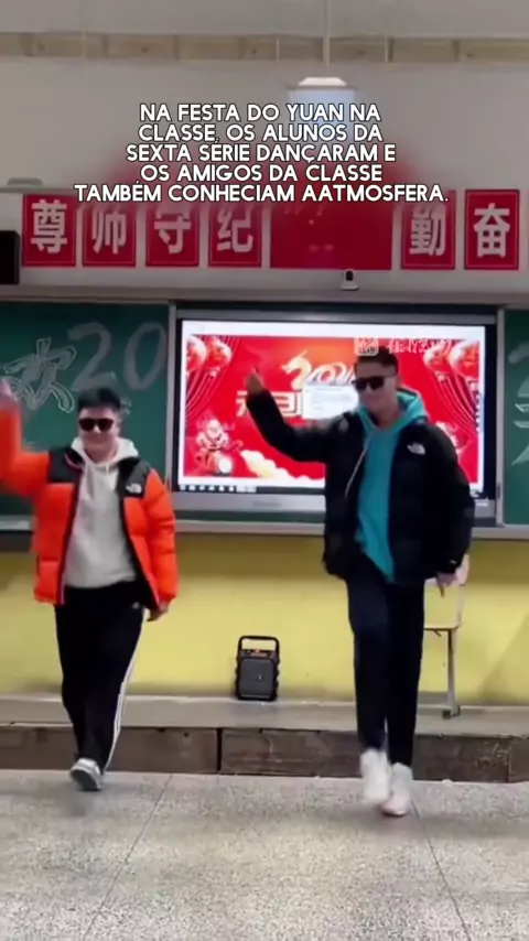 Alunos da sexta série dançam na festa do Dia do Yuan.