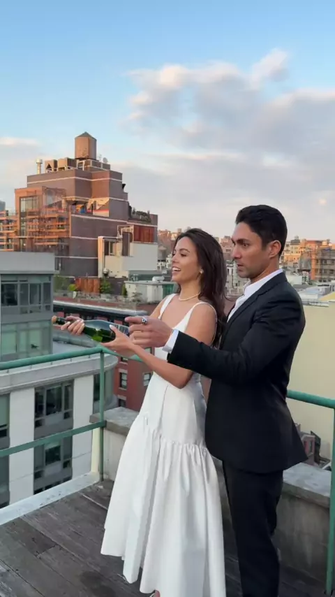 I will not be asking Jonny to open a bottle of champagne again. 🤣##photoshoot#engagement#coupleshoot#nyc#GandhiEverAfter