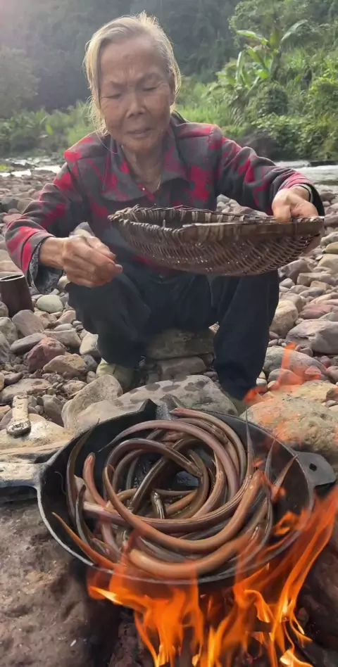 Memasak makanan lezat di pegunungan