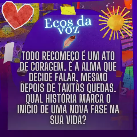 🪶 Toda jornada começa com um passo, e toda história com uma voz que se permite ser ouvida. #EcosdaAlma #Recomeços #PrimeirosPassos #HistóriasQueConectam