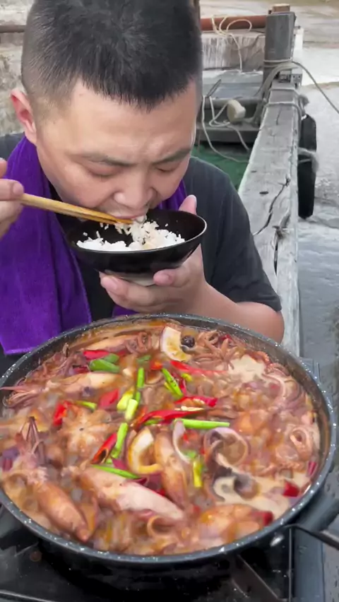 Hot pot seafood dengan nasi, enak banget, kalau mau makan, datanglah ke live room saya # Spicy Little Mini # Spicy Sea Bunny # Seafood