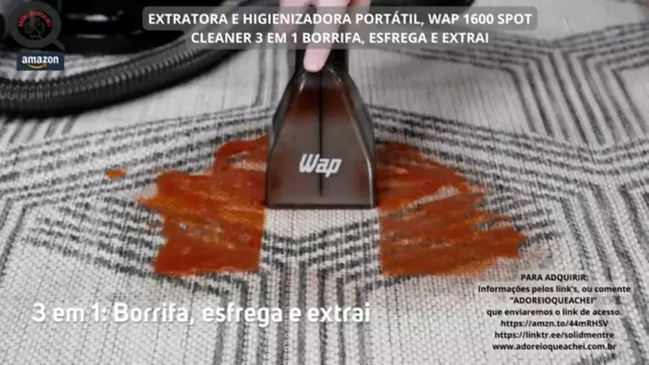 0145-EXTRATORA E HIGIENIZADORA PORTÁTIL, WAP 1600 SPOT CLEANER 3 EM 1 BORRIFA, ESFREGA E EXTRAI. Informações pelos link’s, ou comente “ADOREIOQUEACHEI” que enviaremos o link de acesso. https://amzn.to/44mRH5V https://linktr.ee/solidmentre www.adoreioqueachei.com.br
