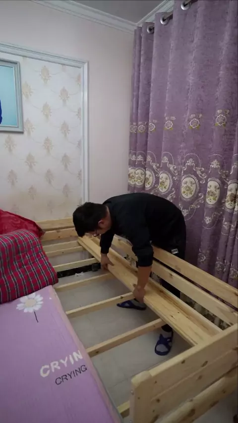 Tempat tidur ayah ditempati oleh dua gadis # tempat tidur mosaik anak-anak # tempat tidur mosaik orang besar # tempat tidur mosaik kayu solid # tempat tidur samping