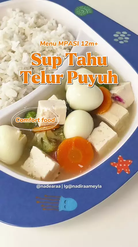 [Menu MPASI & Kids Friendly] Sup Tahu Telur Puyuh Bahan : 3pcs Bawang Putih 3pcs Bawang Merah Sedikit Jahe Air Wortel Brokoli 2pcs Tahu Putih 8pcs Telur Puyuh (Matang) Garam Kaldu Merica (Optional) Jangan lupa save video ini dan recook ya moms π