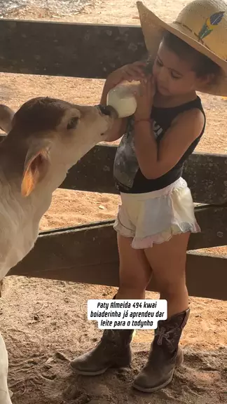 Boiaderinha já aprendeu dar leite para o todinho