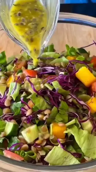 #Salada com molho de vinagrete de maracujá