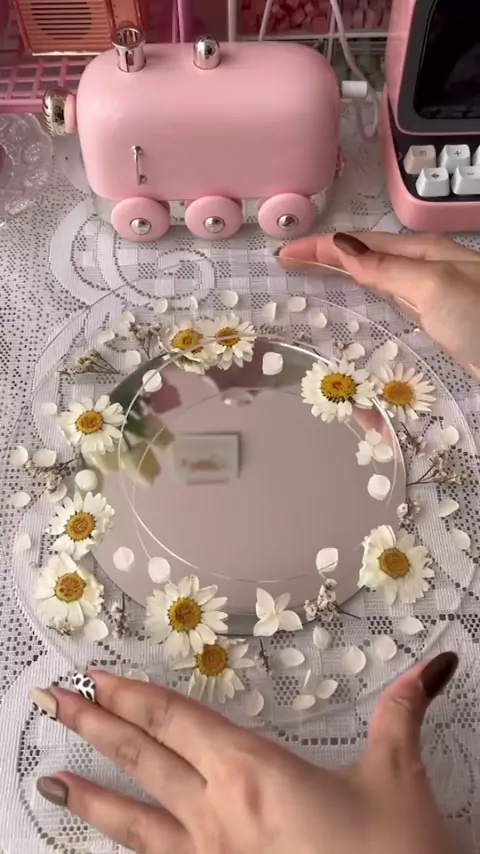 DIY mirror with pressed flowers 😍 link di bio ku. 102 ya 🤩 #elsthétic
