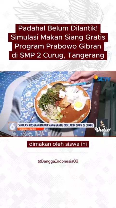 Belum juga dilantik, tapi sudah dilakukan simulasi program makan siang gratis #PrabowoGibran di SMPN 2 #Curug #Tangerang ๐ Acara ini juga dihadiri Menko Perekonomian #AirlanggaHartarto ๐ Semoga bisa memberikan dampak positif kepada anak-anak & pelajar di seluruh indonesia. Aamiin ๐ #Prabowo #PrabowoSubianto #MakanSiangGratis