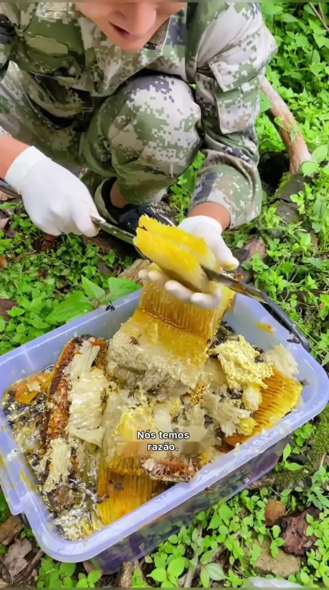 Acabei de escolher o mel do favo de mel do penhasco, realmente muito incrível, puro mel nativo selvagem natural # mel selvagem