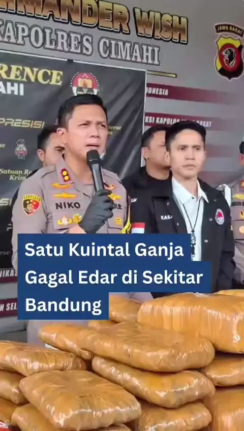 Polres Cimahi menggagalkan peredaran narkotika jenis ganja seberat 101,4 kilogram atau 1 kwintal senilai Rp600 juta. Barang terlarang itu rencananya akan diedarkan edar di wilayah Bandung Raya yang meliputi Kota Cimahi, Kabupaten Bandung Barat (KBB), Kota Bandung dan Kabupaten Bandung. Polisi juga meringkus tiga tersangka yang menjadi pengantar dan pengedar ganja seberat 1 kwintal itu. Mereka ialah KRA (34), DEB (34) dan RAA (25) yang diamankan Satuan Reserse Narkoba Polres Cimahi di wilayah T...
