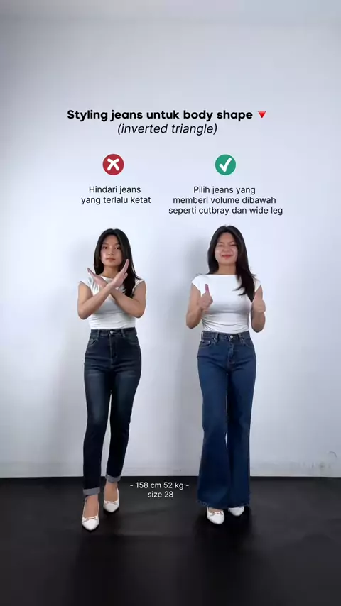 Sering ngerasa bagian atas badan keliatan lebih lebar dibanding pinggul? Tenang, itu ciri khas dari body shape inverted triangle, dan kamu tetap bisa tampil seimbang dengan mix & match yang tepat! Jangan skip video ini, biar look kamu makin stand out yaa bestie! #tips #styling #bodyshape #jeans #denim #jeanspremium #style #