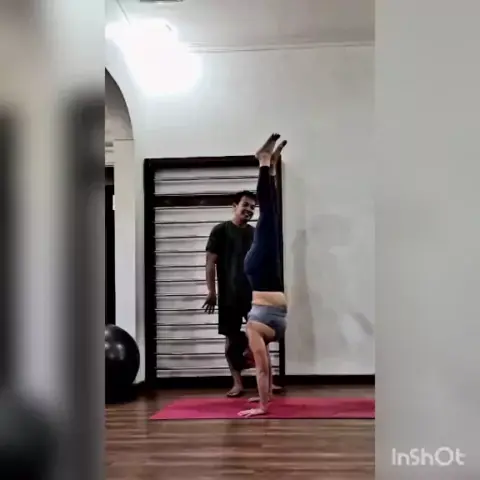 iseng2 latihan handstand ..#yogagirl #poseyoga #handstand.#ginigayague #mamihits #happylife💅 #kerenbanget #resepawetmuda
