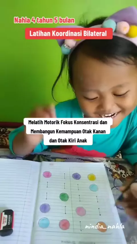 Latihan Koordinasi Bilateral Koordinasi Bilateral merupakan Kemampuan untuk menggunakan kedua sisi tubuh secara bersamaan dalam suatu aktivitas/kegiatan. Contohnya seperti aktivitas belajar mbak Nahla ini π Tugas mbak Nahla adalah : "Membuat bentuk lingkaran dan garis miring sesuai pola bentuk menggunakan kedua tangan secara bersamaan". βοΈ Melatih motorik halus anak βοΈ Melatih kognitif anak βοΈ Melatih fokus anak βοΈ Melatih konsentrasi anak βοΈ Melatih persepsi visual anak βοΈ Membangun kemampu...