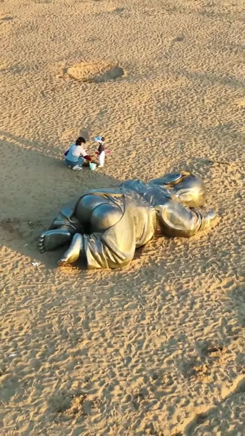 Tahukah Anda apa artinya seorang bayi raksasa tertidur di pantai di Taman Patung Wuhu? # Anhui Wuhu # Anak Bumi # Hari Ibu