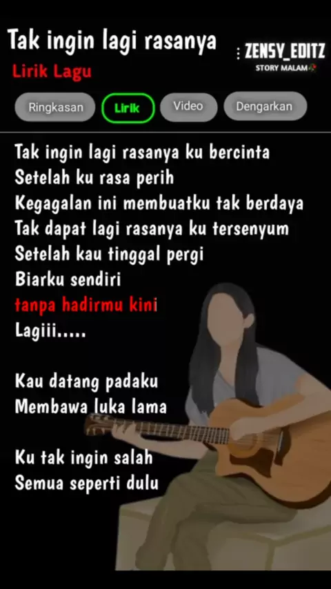 tak ingin lagi rasanya#liriklagu#lirikgoogle#lyrics#musikvibes#laguhits#lagujawa#musicvideo#musicstory#lagu#viralsong#coverlagu#moveonmovement#mellygoeslaw#storywhatsapp#iyricssongs#laguindonesia##masukberanda#zensy_editz#coversong#soundviral#takingapicture#bosan#sendiri