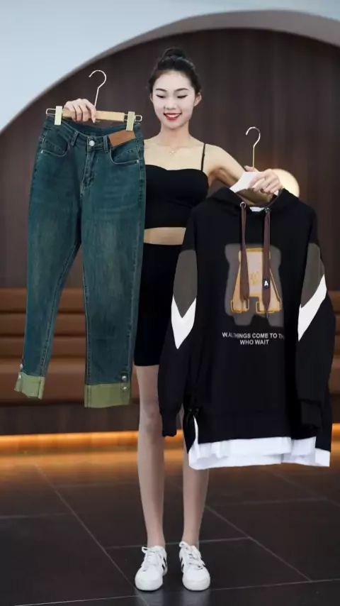 Celana pipa dan jeans dengan poser wanita Korea, set pengurangan usia bergaya asing